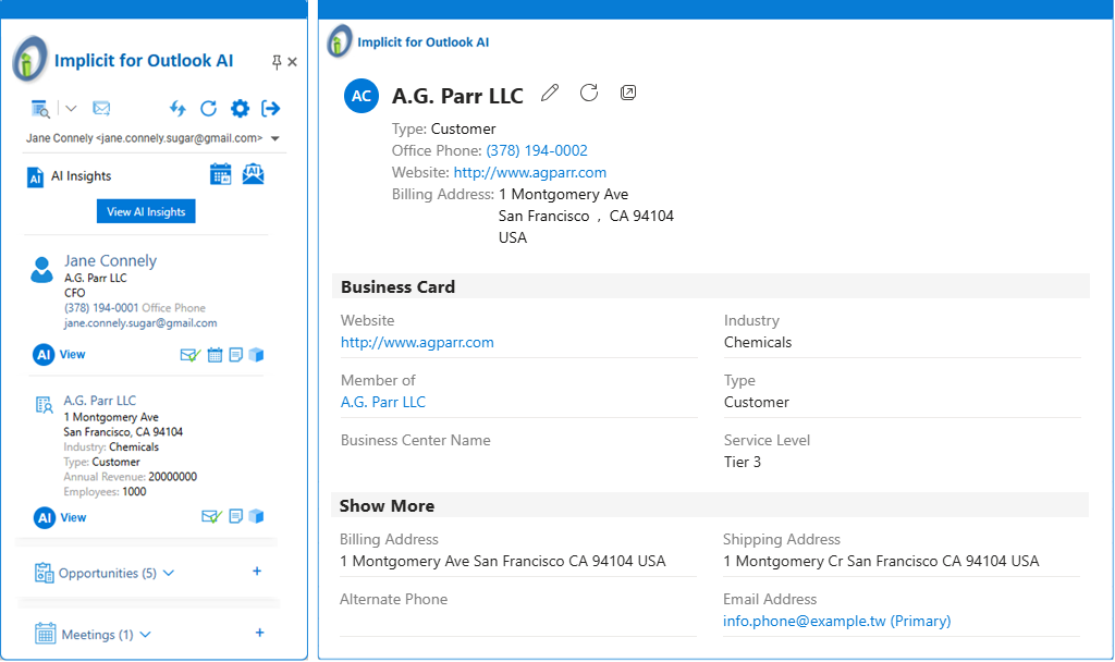 Implicit AI Insights for Outlook is also available as a companion solution designed to work in conjunction with any SugarCRM Outlook integration product.