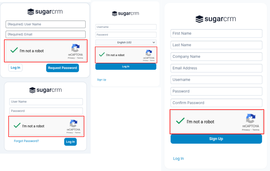 This module integrates Google reCAPTCHA v2 and v3 into your SugarCRM system to enhance the security of all major user-facing forms. Whether you want to stop automated login attempts, fake registrations, or spam password resets, this solution helps you maintain the integrity of your CRM by filtering out malicious activity before it enters your system.